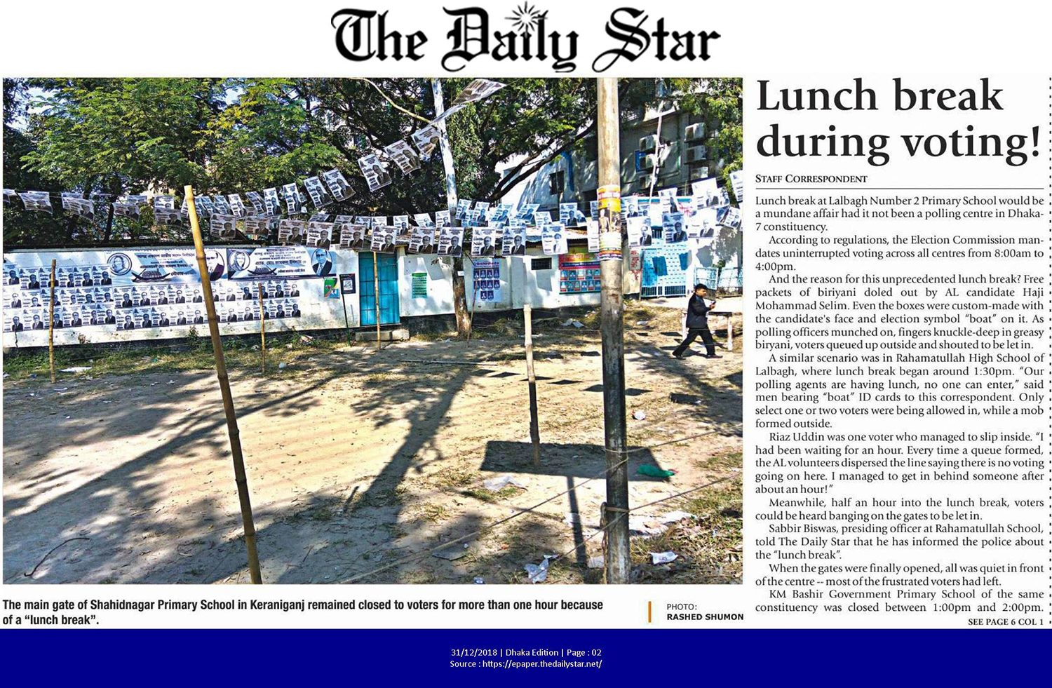 The Awami League government monopolized power without public support through organizing three consecutive rigged elections over 16 years after seizing power. In 2014, an uncompetitive election was organized using the domesticated opposition party Jatiya Party, which had very low voter turnout. Although the opposition party participated in 2018, accusations of ballot stuffing the night before, expelling polling agents, center capturing, and widespread fraud made the election known as "Lailatul Election". In 2024, lacking a capable opposition party, the Awami League created artificial competition by fielding multiple candidates from within their own party, which analysts called a "Dummy Election".